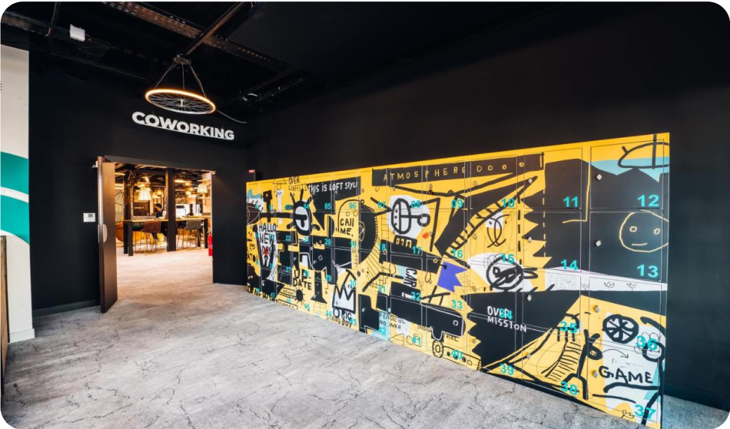 Lieux partagés : L'établissement Cowool Villeneuve d'Ascq dispose aussi d'un bar-salon cosy, d'une estrade accueillant conférences, pauses cafés ou coworkers, et de divers espaces loisir (salle de cinéma, espace santé, boulodrome, salle de gaming...). Son vaste vaste atrium de 700 m², orné de ses magnifiques oliviers centenaires, est aménagé en différents espaces de coworking calmes et lumineux pour une ambiance de travail conviviale et cosy.